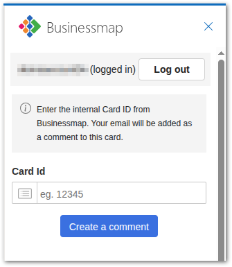 To create a comment, click on the “Apps” button next to the email you want to use, select “Businessmap,” and click the “Create a comment” option.