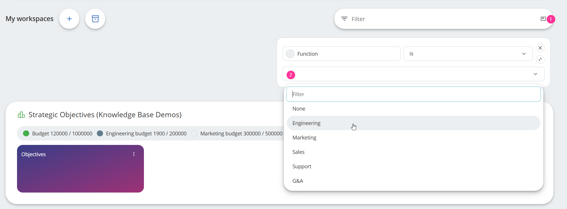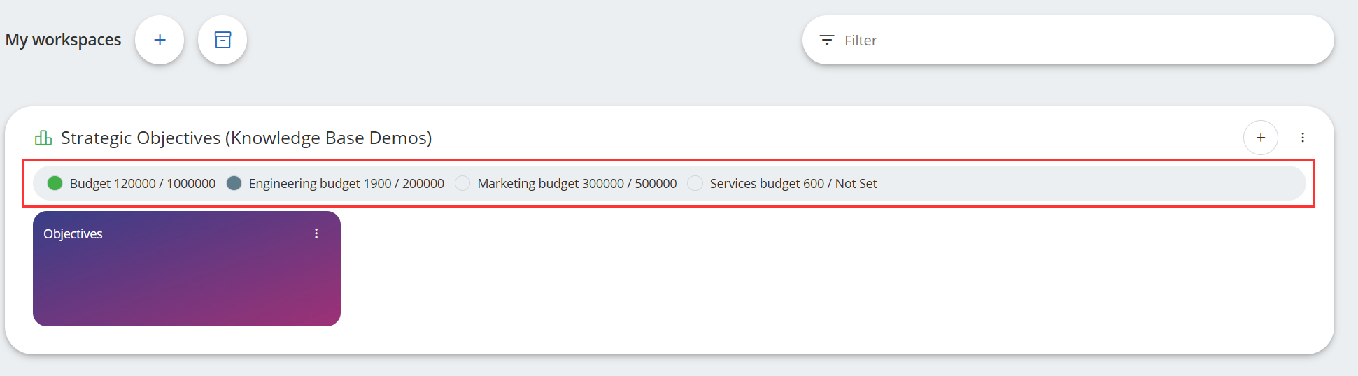 Example: Add a “Budget” field to each board. At the workspace level, Businessmap can automatically consolidate budgets from all boards.