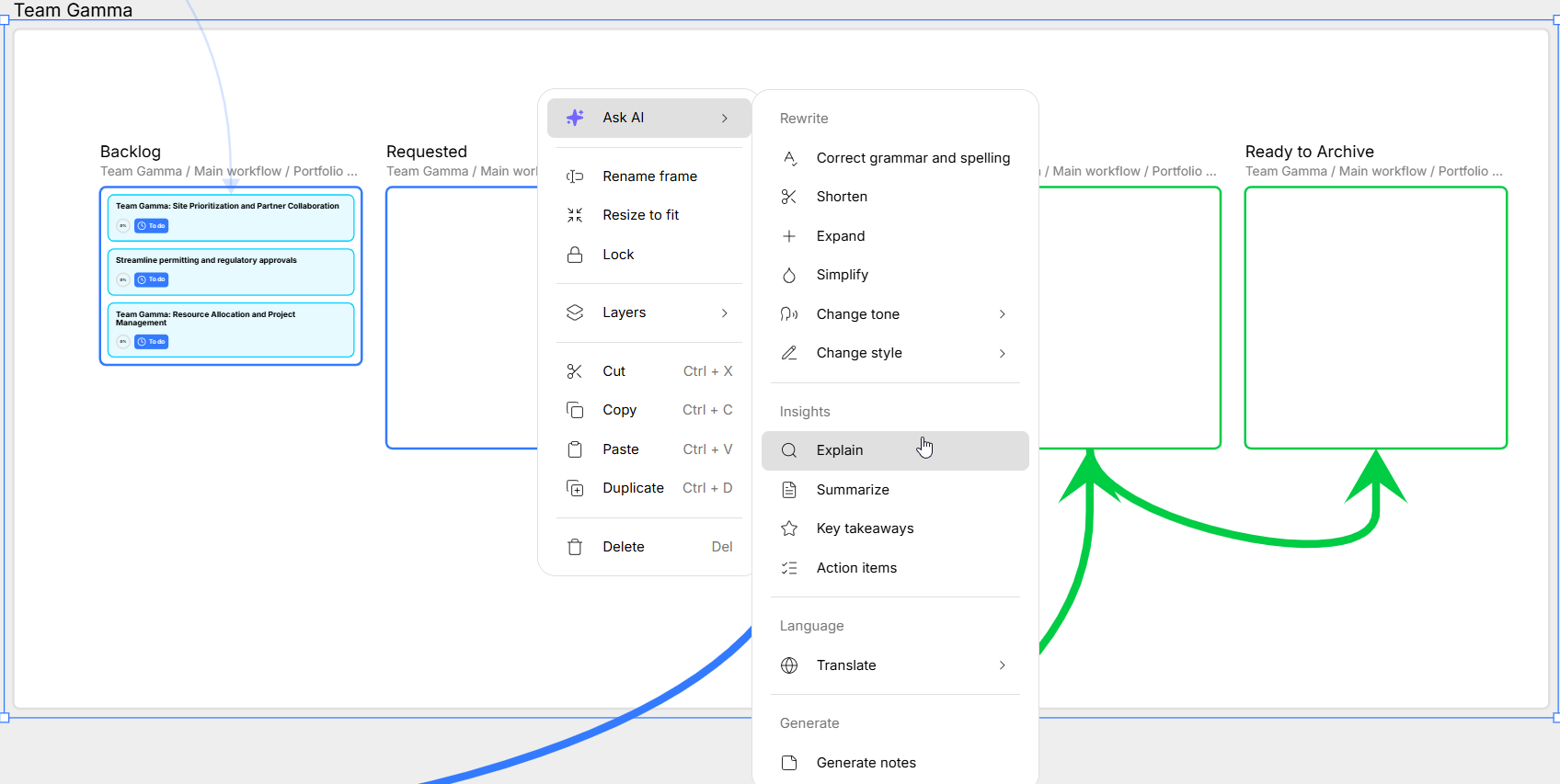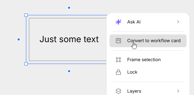 AI Canvas / Whiteboards just got a very useful upgrade! Now, you can convert any object containing text—notes, shapes, and more—directly into a workflow card. No more limitations: if it has text, you can turn it into a card and bring it into your process.