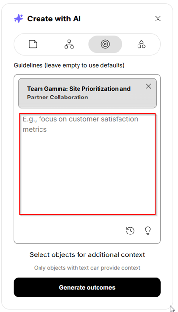 We’ve added an extra “clarification” step when generating outcomes with AI, just like when generating children. This allows you to provide more specific guidance to the AI, resulting in more accurate and relevant outcomes for your cards and projects.