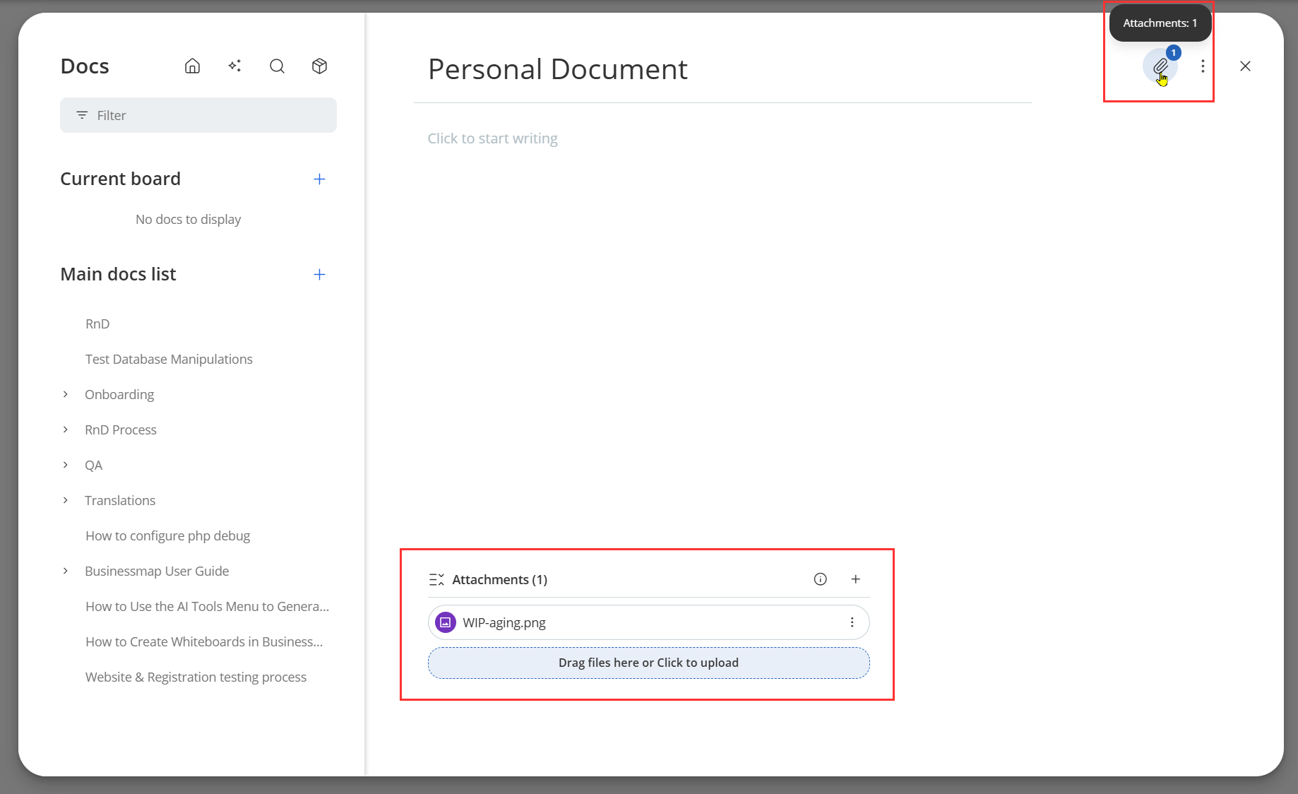 You can now designate distinct permissions for adding and removing Docs, giving you more granular control over access and collaboration across every role in your organization. Docs also now fully support attachments—a dedicated sidebar button displays all attached files, complete with live counts and the maximum file size as defined by your global settings.