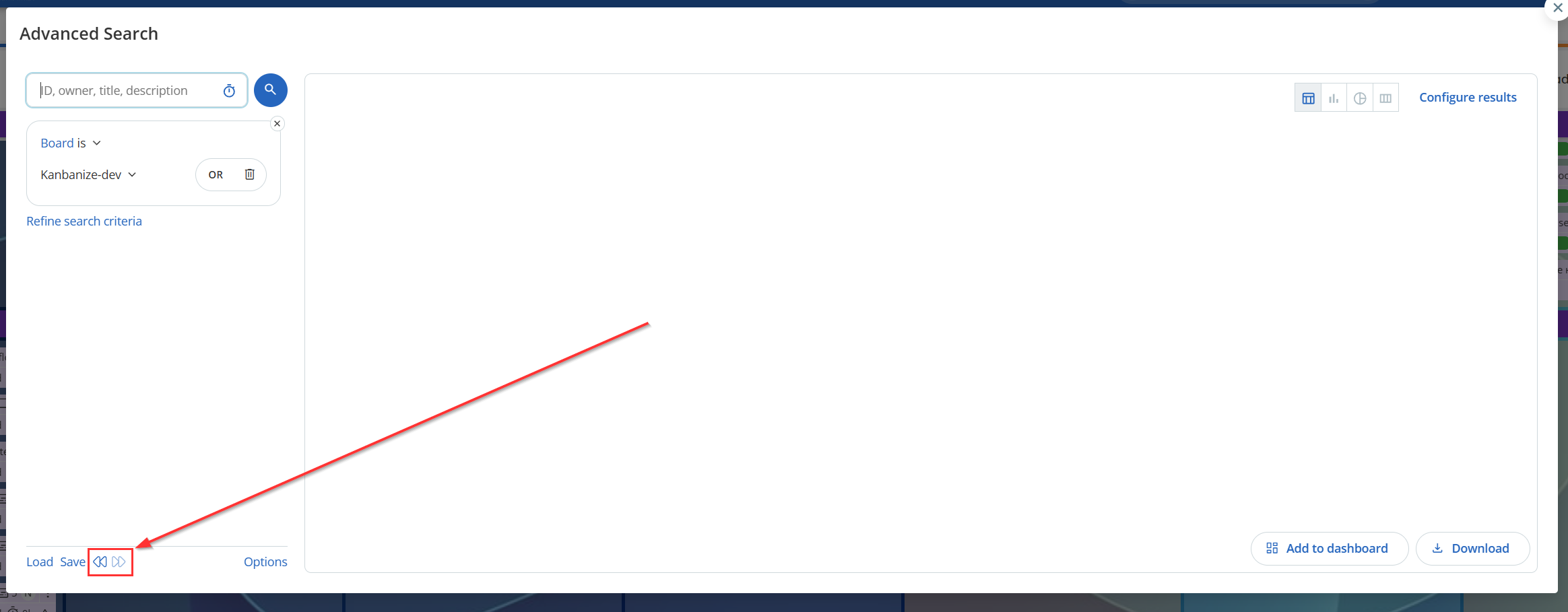 Searching is more powerful and user-friendly, with the ability to rewind and fast forward through your last 10 searches. Filters load automatically depending on the context—a board filter appears if you launch advanced search from within a board, or the last search loads if you’re outside board context. When no searches exist, buttons are grayed out with informative tooltips. This ensures you always stay on top of your information retrieval, minimizing repetitive efforts.