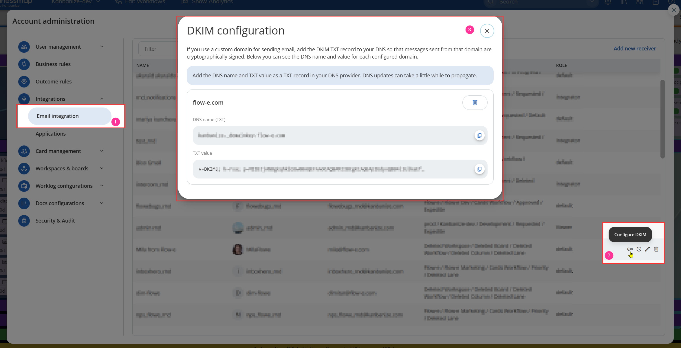 Security meets usability in our improved email integrations. DKIM has been added for every custom mail integration, allowing you to set DKIM records per domain and access the configuration data needed for your DNS. This guarantees all product-based emails sent from your domain are signed with a secure private key, ensuring compliance with best practices and maximizing delivery success rates.