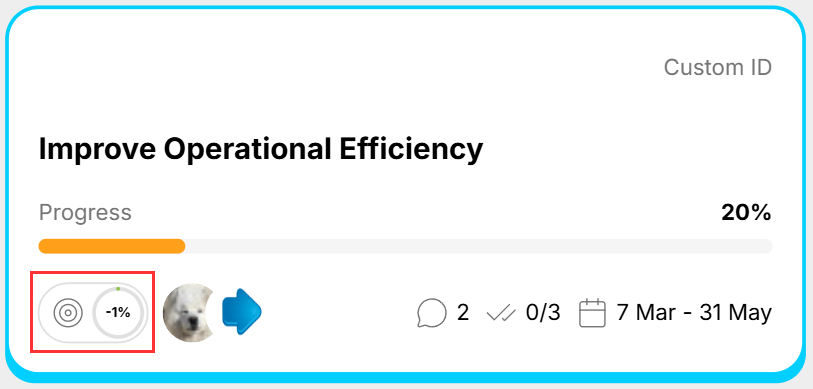 Outcome tracking is more accurate now—progress can now display negative percentages, providing a clearer picture of setbacks or corrective actions. This visualization makes it easier to spot trends and areas needing attention, empowering better decisions and project reviews.