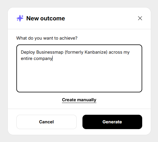 AI-powered outcome generation lets you quickly craft relevant outcomes based on context, streamlining the process of turning your goals into actionable, trackable results.